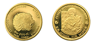 Чрезвычайно редкая. Золото. 0,7499 oz. 0,750.... Чрезвычайно редкая. Золото. 0,7499 oz. 0,750. 31,1 г. Тираж 131 шт. KM#59.