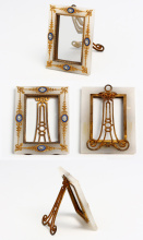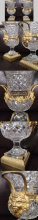 Вазы стеклянные парные с бронзовым декором - навершиями, ручками "Головы фавнов" и постаментами
