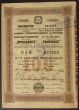 Акция. Рига. Тов-во русско-французских заводов "Проводник". Пай в 100 руб.