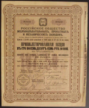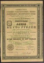 Акция. Брянский рельсопрокатный и механический завод. Привилегированная акция в 100 руб.