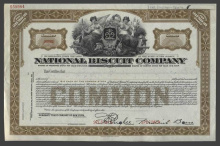 Акция. США. Нью-Джерси. Национальная бисквитная Компания. Сертификат менее 100 акций. Образец