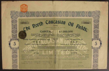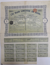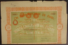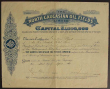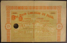 Акция. Северо-Кавказские нефтепромыслы. 25 акций по 10 шиллингов.
