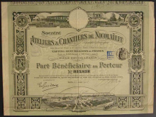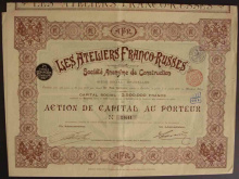Акция. Санкт-Петербург. АО Русско-Французских Заводов (бывший Берда). 500 фр.