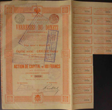 Акция. Сантуриновка (Донецкий бассейн). АО Стекольного и химических заводов. 100 фр.