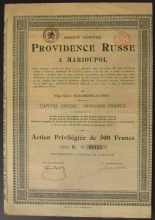 Акция. Мариуполь. Русский провиданс. Акция привилегированная в 500 фр.