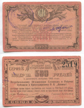 Армавир. Кубанский Союз Потребительских Обществ. Ордер. 500 руб. Рябч.2 № 5706 #2519