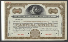 Акция. США. Иллинойс. Страховая Компания от огня и на море. Сертификат на 100 акций. Образец