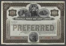 Акция. США. Северная Каролина. Эшвильская Электрическая Компания. Сертификат менее 100 акций.Образец