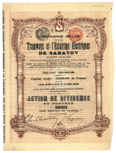 Акция. Саратов. Трамвай и электрическое освещение. Акция 100 фр.