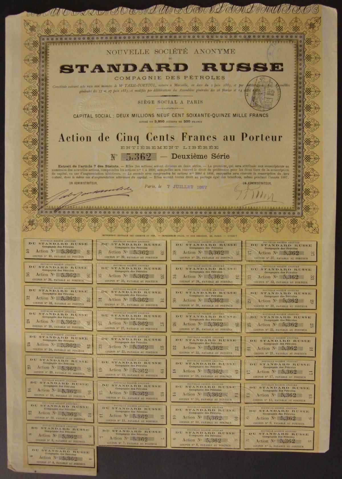 Акция. Нефтяная компания "Русский стандарт" (нефтедобыча в Грозненском районе). 500 фр.