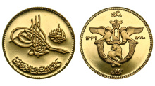 Чрезвычайно редкая. Золото. 0,1140 oz. 0,900. 3,94 г. Тираж 200 шт. KM#952. Чеканены в презентационных целях для королевской семьи. Часть тиража чеканена на тонких заготовках (вес 3,9-4,0 г.)