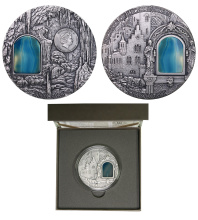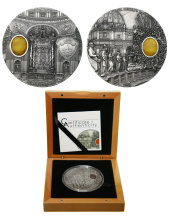 Редкая. Серебро. 1,9981 oz. 0,999. 62,21г. "Минералогическое искусство - Базилика Святого Петра". KM#471. Вставка - кусочек янтаря. Тираж 999 шт. В оригинальной коробке и капсуле. С сертификатом.