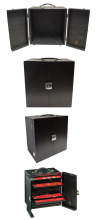 Б/у. Футляр, открывающийся спереди и съемными дверцами. Внутренняя отделка из высококачественного дерева, внешняя мягкая подкладка из искусственной кожи. С хромированными замками. Подходит для лотков Abafil стандартного размера.