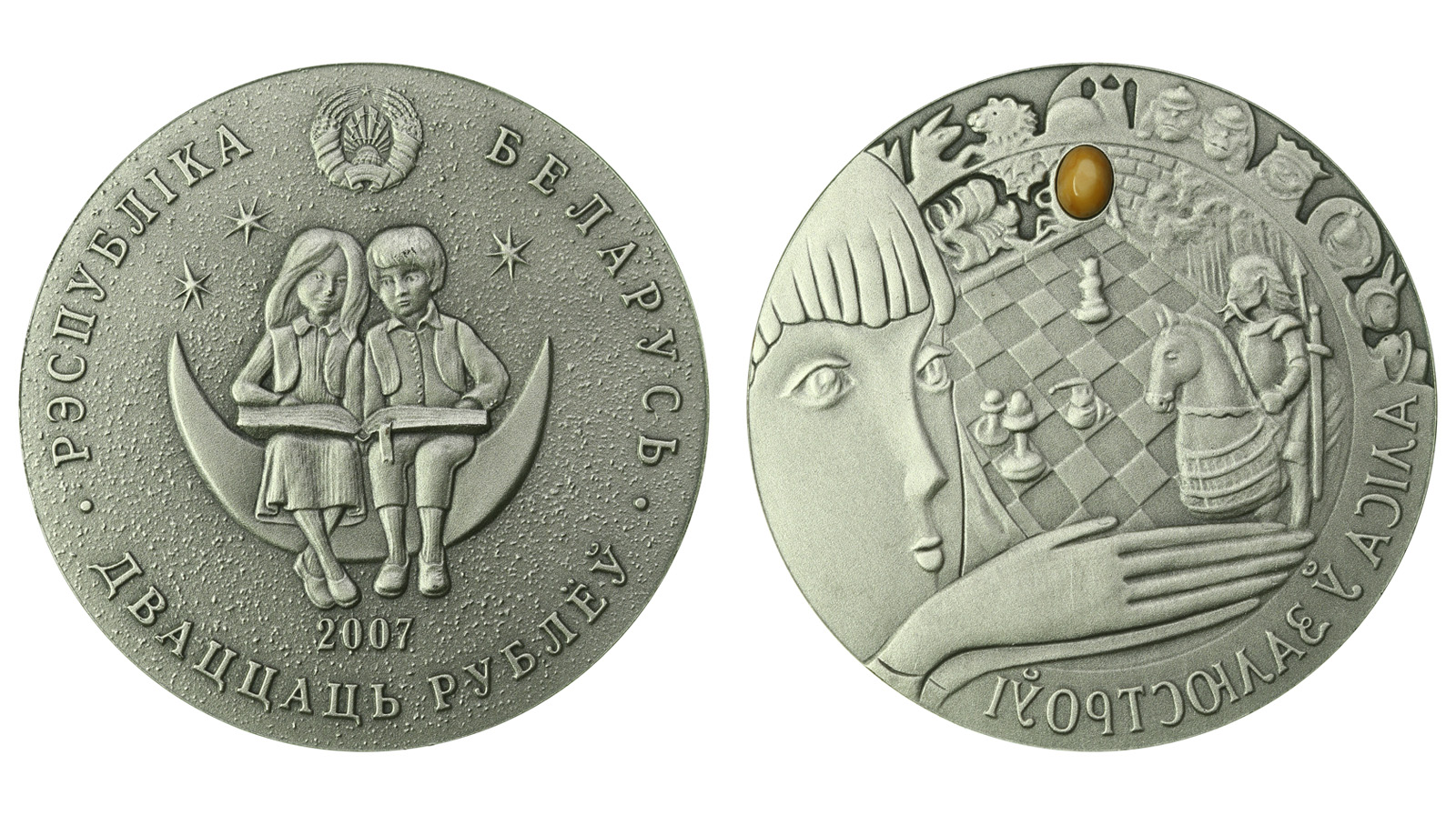 Серебро. 0,841 oz. 0,925. 28,28 г. "Зазеркалье". KM#162. Вставка из камня. В оригинальной капсуле.