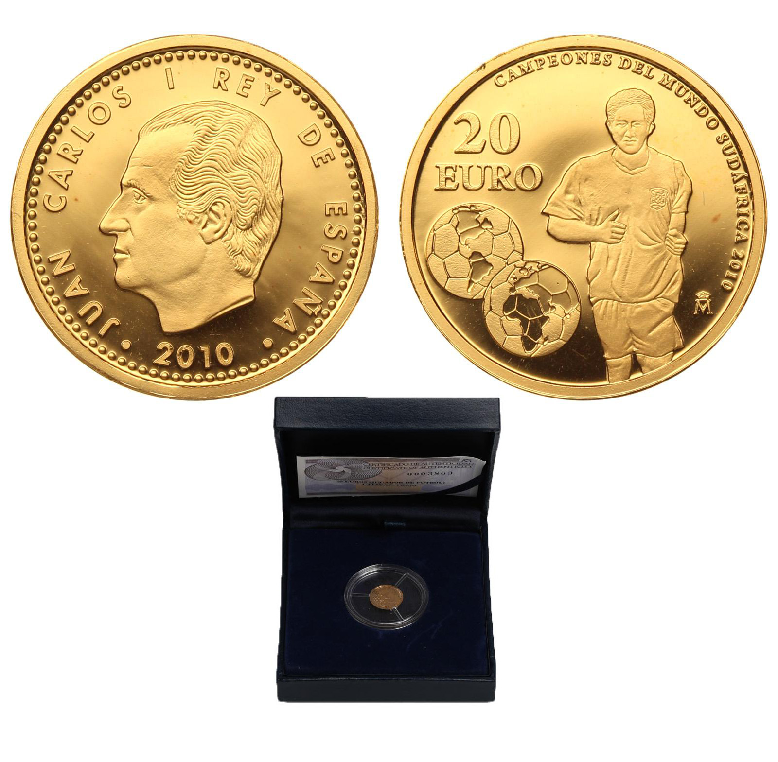 Золото. 0,0398 oz. 0,999. 1,24 г. "Сборная Испании - Чемпион мира по футболу в ЮАР". KM#1177. В оригинальной капсуле и коробке с сертификатом.