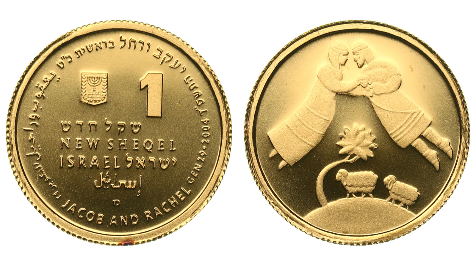 Золото. 0,04 oz. 0,999. 1,2441 г. "Якоб и Ракель". В оригинальной капсуле.