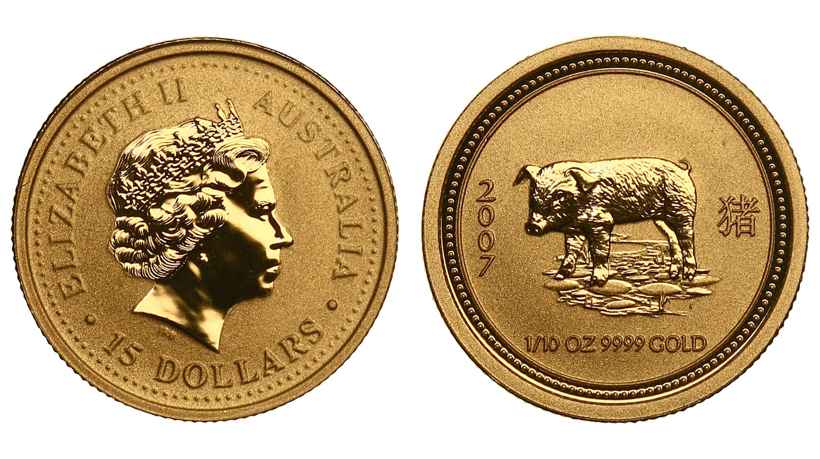 Золото. 0,1 oz. 0,999. 3,11 г. "Год свиньи". В оригинальной капсуле.