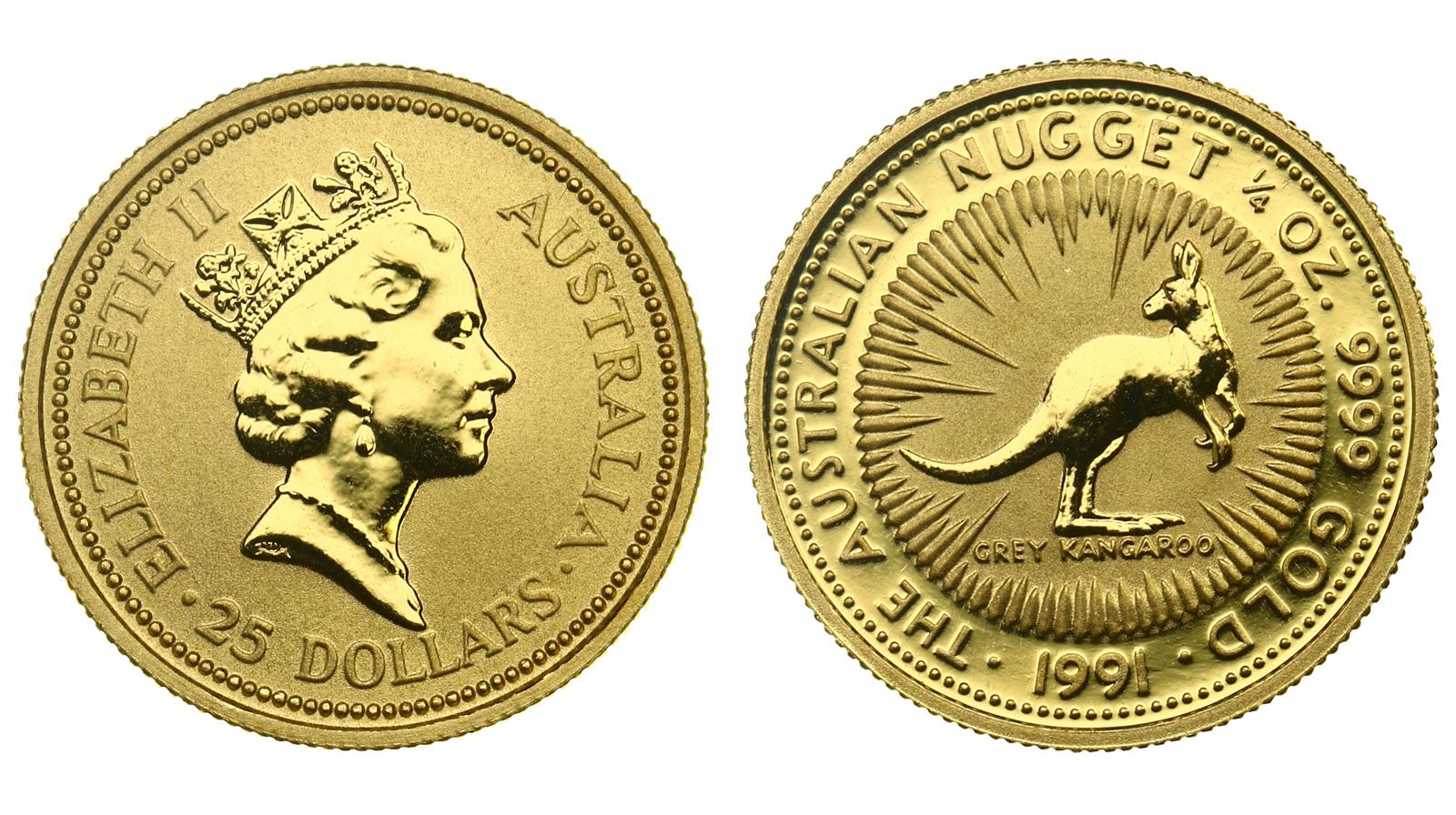 Золото. 0,2489 oz. 0,999. 7,7508 г. "Серый кенгуру". КМ#142. В оригинальной капсуле.