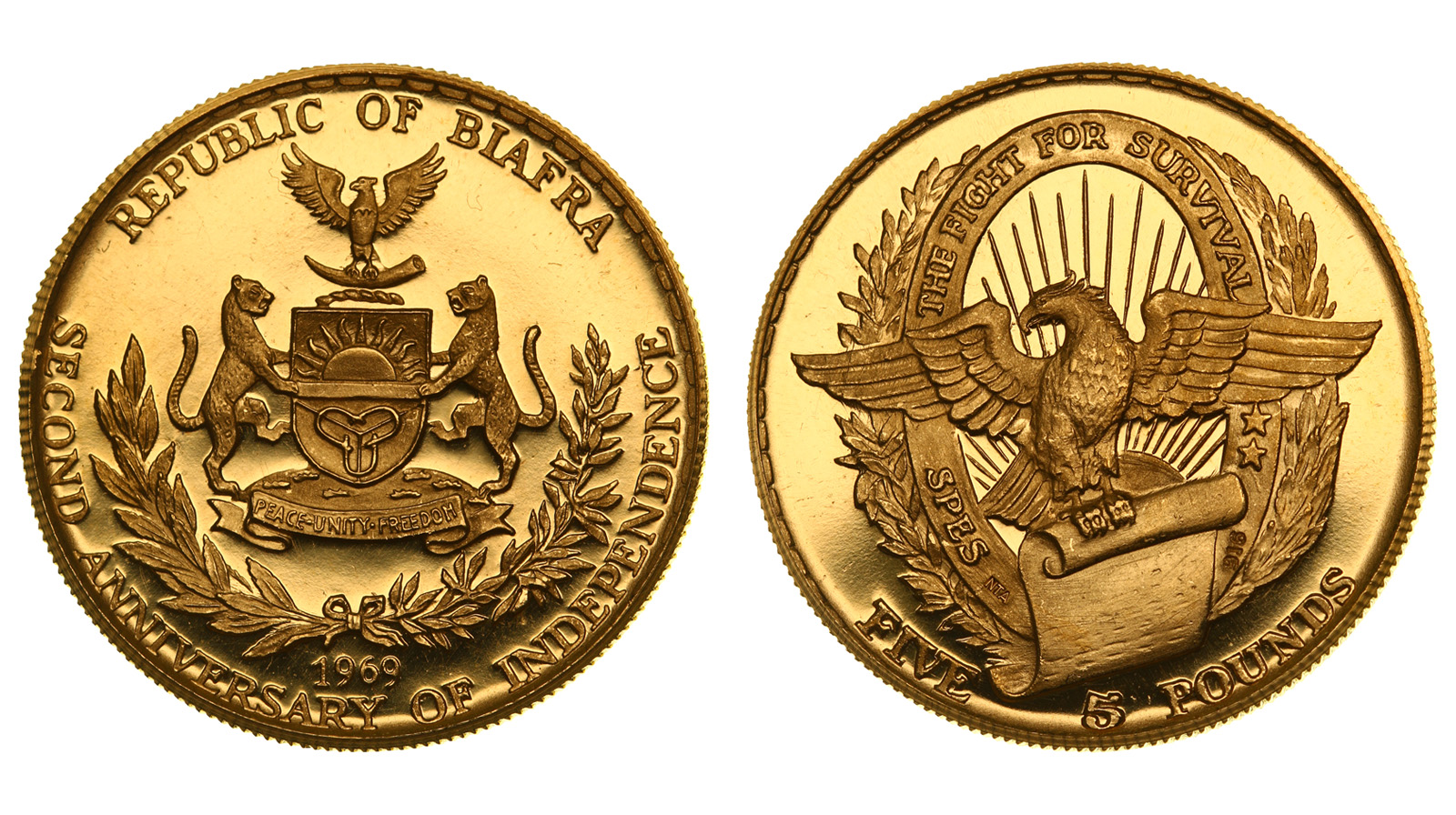 Редкая. Золото. 0,471 oz. 0,917. 15,9761 г. "2-я годовщина независимости". КМ#9. Незначительные следы хранения.