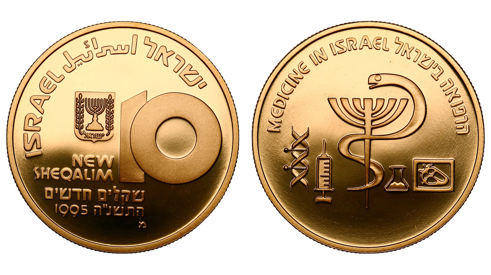 Золото. 0,5 oz. 0,917. 16,96 г. "47-я годовщина независимости Израиля / Медицина Израиля". Тираж 1230 шт. КМ#266.