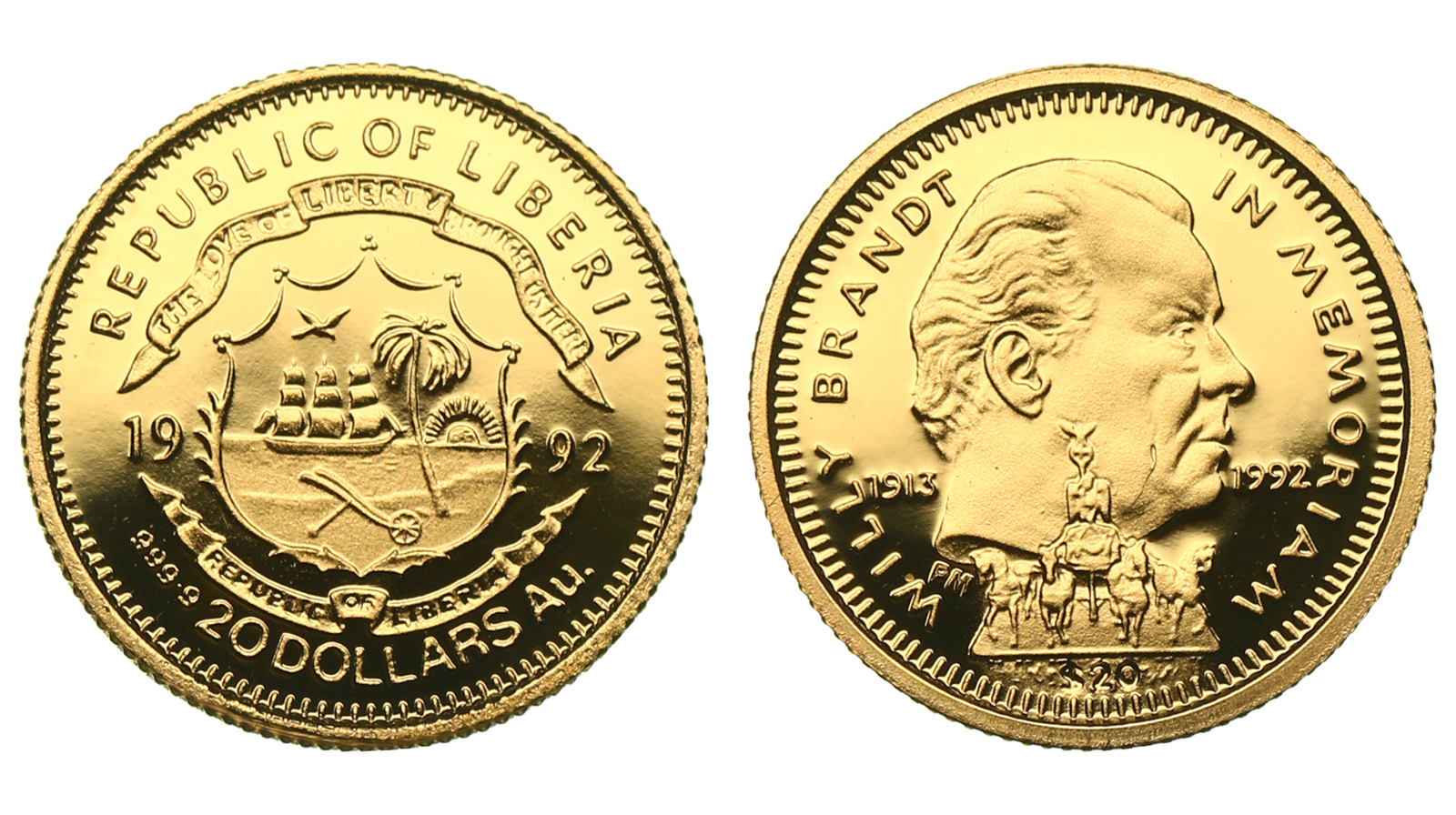 Золото. 0,04 oz. 0,999. 1,2441 г. "Вилли Брандт". В оригинальной капсуле.