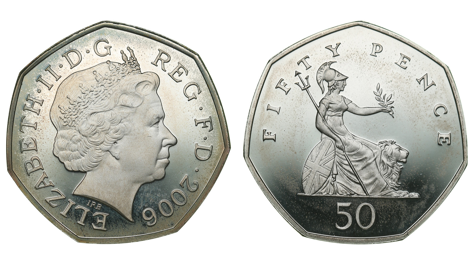 Серебро. 0,239 oz. 0,925. 8,0 г. "Сороколетие 50 пенсов". КМ # 991a. В капсуле.