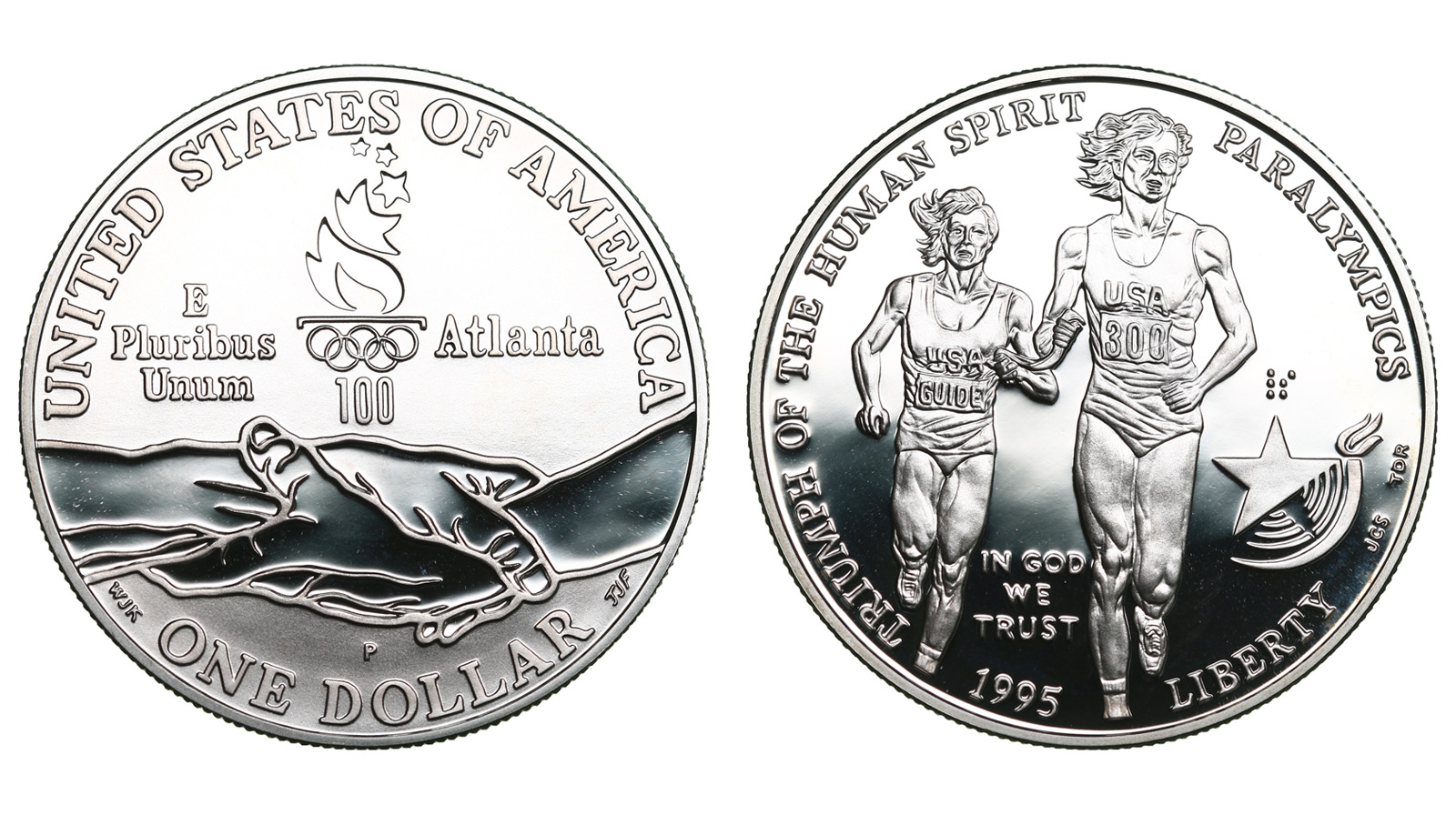 Серебро. 0,7736 oz. 0,900. 26,73 г. "Паралимпийские игры в Атланте. Бег". КМ#259.