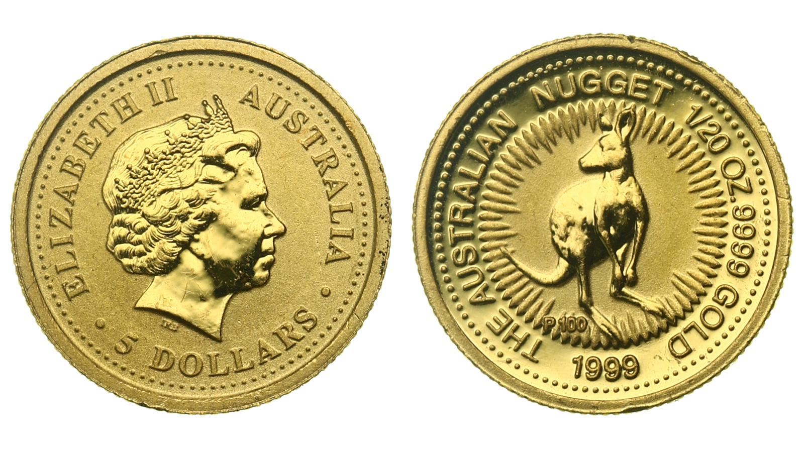 Золото. 0,0505 oz. 0,999. 1,571 г. "Кенгуру". КМ#448. Незначительные следы хранения.