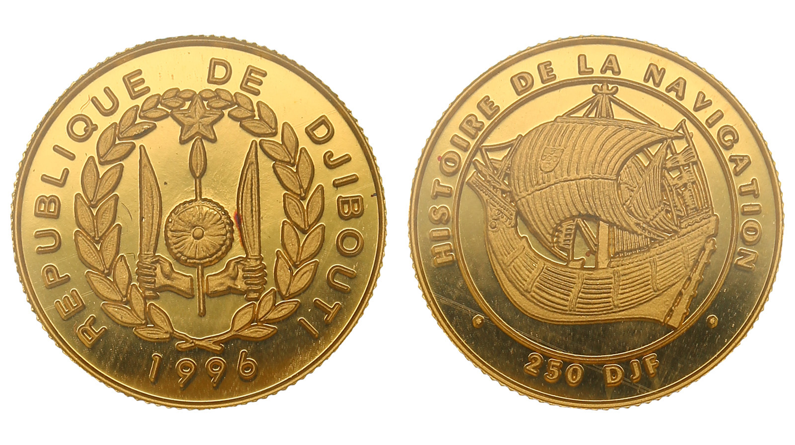 Золото. 0,04 oz. 0,999. 1,24 г. "История мореплавания". КМ#36.