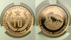Чрезвычайно редкая. Золото. 0,7499 oz. 0,750.... Чрезвычайно редкая. Золото. 0,7499 oz. 0,750. 31,1 г. Тираж 131 шт. KM#59.